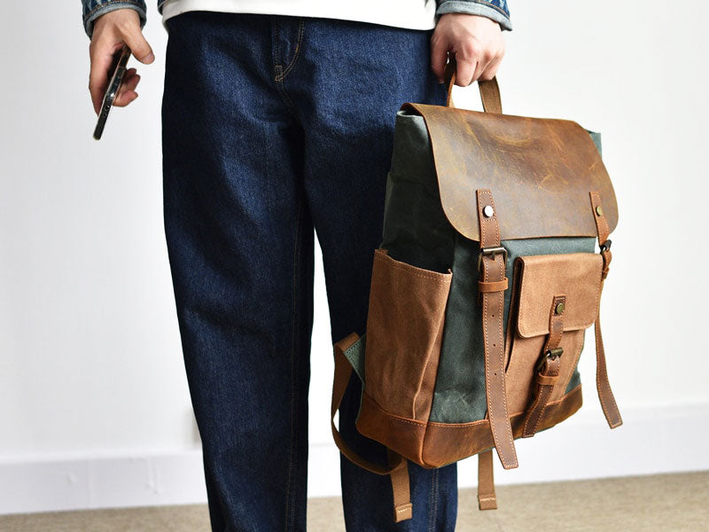Débutons cette présentation de notre sac à dos en toile et cuir vintage par le plus important. On a bien saisi que, souvent, vos sacs à dos ne correspondent pas à l'usage que vous souhaitez en faire. Qu'il vous faut un sac à dos ni trop petit pour y mettre suffisamment d'affaires, mais ni trop gros non plus, pour qu’il reste agréable à porter. Pour ça, le format parfait, c’est le 15-20 litres. Léger, maniable, pratique.