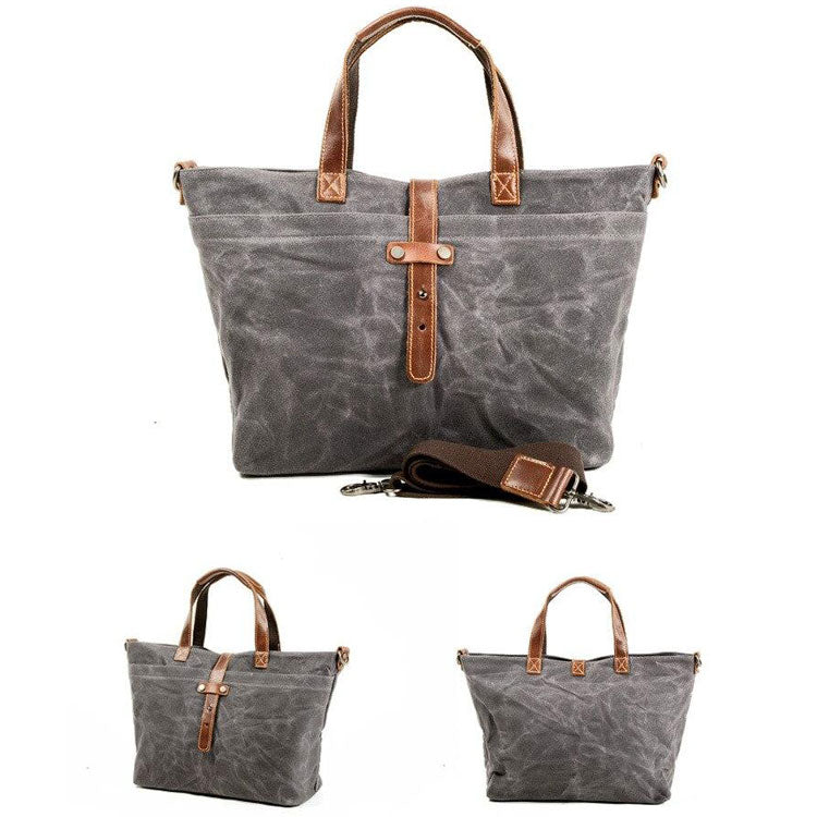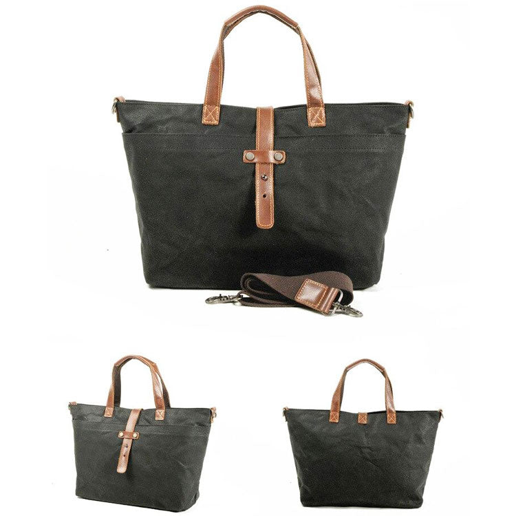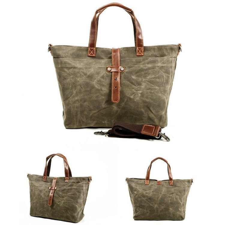 - Matériaux Principaux : Toile en coton ciré imperméable, cuir et doublure.