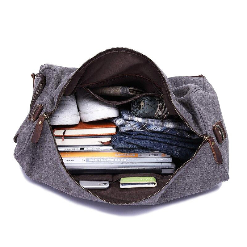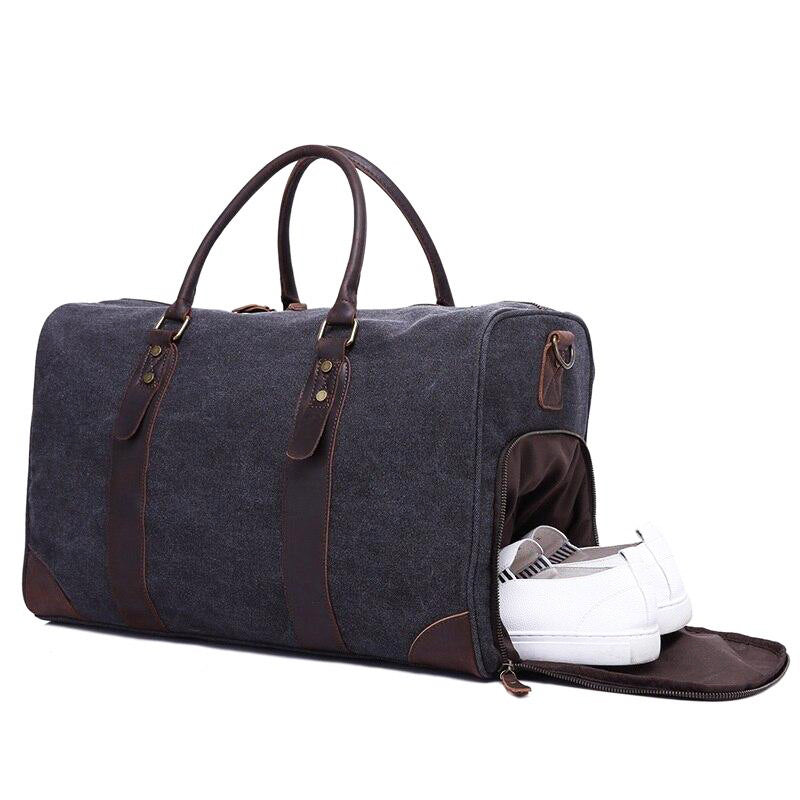 - À l'extérieur : Une grande poche zippée latérale pour vos chaussures de voyage (ou de sport), une sangle amovible à crochets (réglable) et deux larges poignées de transport rembourrées et robustes.